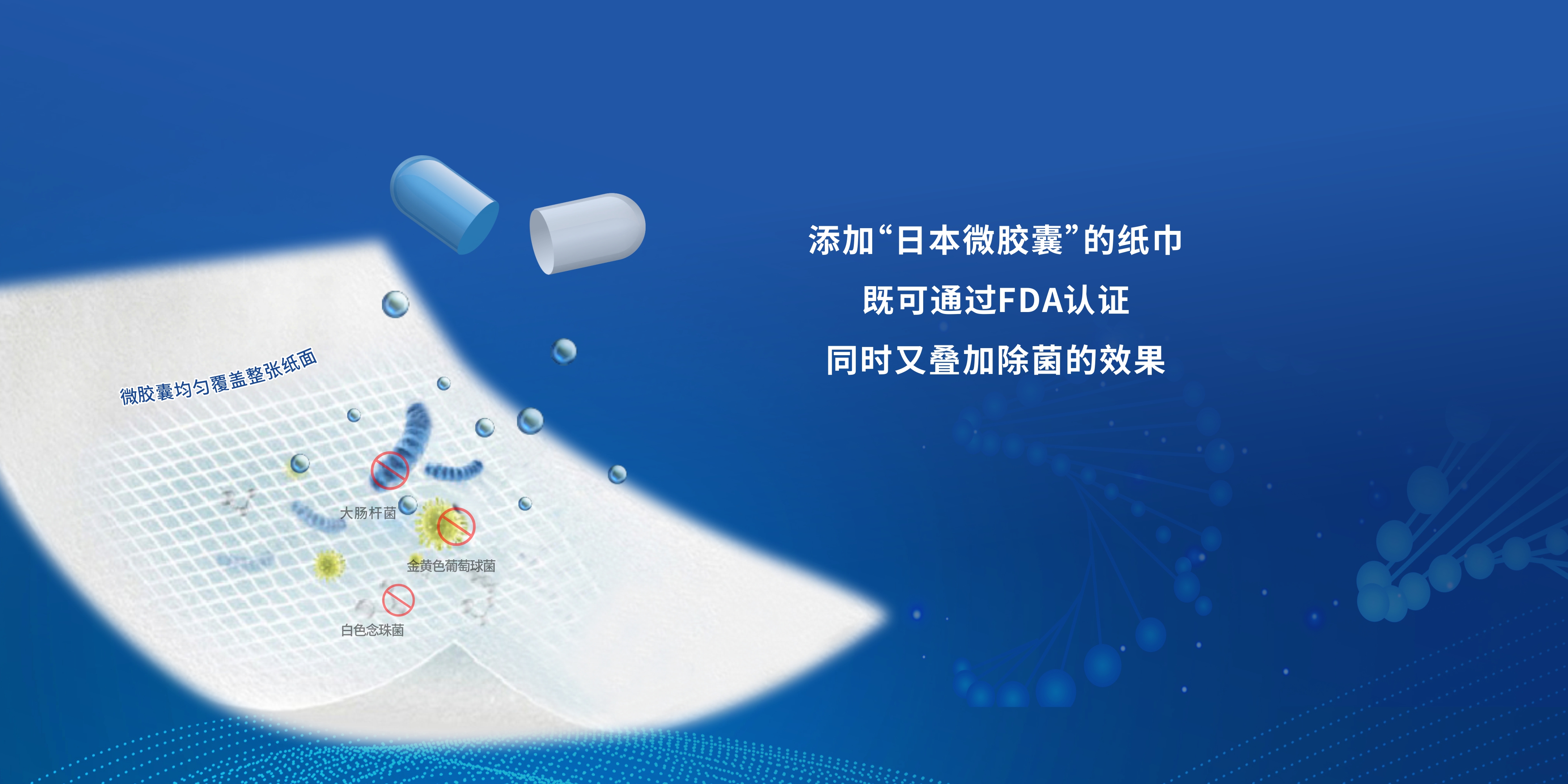 特點(diǎn):對(duì)人體無(wú)藥物作用殺菌,對(duì)細(xì)菌有藥物作用殺菌。原理:紙巾中含有納米藥物膠囊,利用紙巾中自然含水對(duì)細(xì)菌進(jìn)行緩慢釋放靶向性殺菌。殺菌率大于90%,測(cè)試方法:取出紙巾中自然含水提取液,使用GB15979-2002-C4標(biāo)準(zhǔn)測(cè)試。